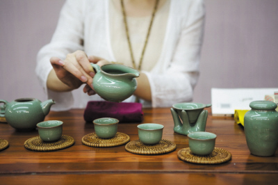 与此同时,西展厅内紫砂艺术家们带来了文化色彩浓郁的宜兴紫砂作品。江西省工艺美术学会率景德镇的黄家泉、苏亚军、刘镇光、姜正科、朱景明、万羊平、陶易、汪忠等陶瓷艺术家激情展示风格各异的正宗景德镇陶瓷作品;河南钧瓷、建水紫陶、龙泉青瓷、汝窑、玻璃工艺品、铁壶、银壶、沉香、台湾茶器、竹质茶具、木质茶具、佛珠手串、珠宝首饰、玉器、字画、根雕茶台、红木家具等工艺品也缤纷亮相茶博会,为喜欢以茶会友的茶友们搭建了一个互动交流的平台。